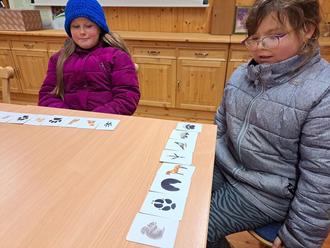 Zum Ende unserer Suche haben wir noch gemeinsam ein Spiel gespielt, bei dem verschiedene Spuren ihren Tieren zugeordnet werden mussten.