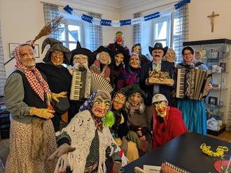 Auch 2025 stürmten die Hexen das Monheimer Rathaus. Im Vorzimmer des Bürgermeisters wurden die Hexen wie jedes Jahr gebührend empfangen und verköstigt, bevor sie nach einer Tanzrunde weiterzogen zur ihrer nächsten Station.