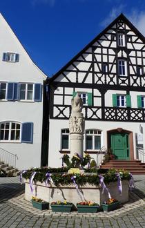 Ein herzlicher Dank der Stadt Monheim an den Gartenbauverein für den schön geschmückten Osterbrunnen 2023.