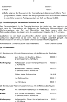 | Bei Inanspruchnahme der vorhandenen Tischdecken beträgt die Reinigungsgebühr je Tischdecke: — 3,50 € | ||