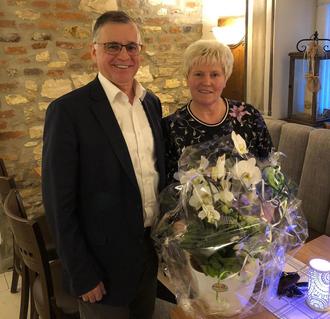 Bürgermeister Günther Pfefferer verabschiedet Lisa Wiedemann, die seit 2004 in der Stadthalle als Reinigungskraft äußerst zuverlässig für stete Sauberkeit sorgte, in den wohlverdienten Ruhestand.