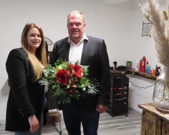 Lisa Kosak hat im Erdgeschoss des Anwesens Hofer Straße 4 einen Salon eröffnet. Als gelernte Friseurin bietet sie neben Friseurleistungen zusätzlich auch noch Waxing und Gesichtsmassagen an. Termine können unter 0160/98207646 oder Lisapantau@gmail.com vereinbart werden. Bürgermeister Matthias Döhla überreichte im Namen der Gemeinde einen Blumenstrauß und wünschte alles Gute zur Neueröffnung.