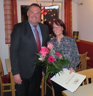 Im Rahmen der Weihnachtsfeier wurde Angelika Erhard für diese sehr lange Treue zur Gemeinde Konradsreuth geehrt und ausgezeichnet. Bürgermeister Matthias Döhla überreichte im Auftrag von Staatsministerin Ulrike Scharf die Ehrenurkunde des Freistaates Bayern und bedankte sich auch im Namen des Gemeinderates und der Kollegen für die allzeit gute Zusammenarbeit und Kollegialität.