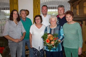 Einen ganz besonderen Ehrentag konnte Frau Gusta Rößler aus Ahornberg begehen: Im Beisein ihrer Familie und Freunde feierte sie ihren 95. Geburtstag. Auch Bürgermeister Matthias Döhla ließ es sich natürlich nicht nehmen und gratulierte im Namen der Gemeinde und des Landrats recht herzlich. Ein kleines Geschenk hatte er ebenfalls mitgebracht. In geselliger Runde wurden einige Anekdoten zum Besten gegeben, ehe sich die Familie zum Gruppenfoto aufstellte. Unser Bild zeigt (v.l.) Susanne Schlegel (Enkelin), Georg Schlegel (Schwiegersohn), Elke Rößler (Schwiegertochter), Bürgermeister Matthias Döhla, die Jubilarin Gusta Rößler, Dietmar Rößler (Sohn) und Riabeth Schlegel (Tochter).