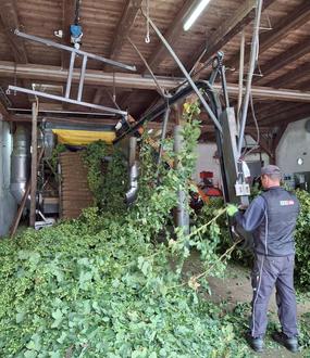 Frau Pingold vermittelte uns im Anschluss auf dem Hof viel Interessantes über den Anbau, die Ernte und die Verarbeitungsgebiete von Hopfen. Nachdem die Hopfenernte gerade in vollem Gange war, konnten wir die Ernte live erleben und die Luft war voller Hopfenduft. Wir erfuhren dabei, wie vielfältig Hopfen in Speisen verarbeitet werden kann und nicht nur zum Bierbrauen Verwendung findet. In kleinen Kostproben durften wir uns vom guten Geschmack in den verschiedenen Speisen überzeugen.
