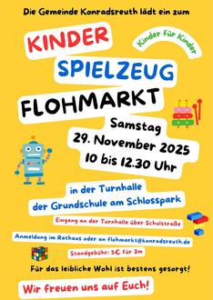 Am Samstag, den 29. November 2025 von 10 bis 12.30 Uhr in der Schulturnhalle der Grundschule am Schlosspark in Konradsreuth