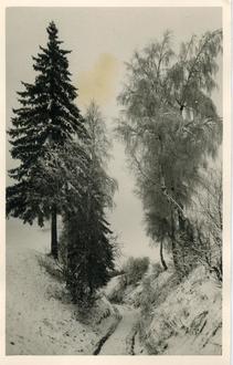 Winterbild um 1950 von Leopold Augste: Die Schwarzfurth-Huhla (oder der Langweg)