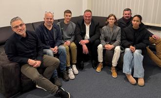 (v.l.n.r.) Dr. Pascal Bächer, Sebastian Schönberger, Jonas Sell, Bürgermeister Matthias Döhla, Azmi Secilmis, Sascha Leupold, Alicia Schneider.