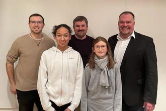 Bild v.l.n.r.: Johannes Wurm (Kreisjugendpfleger), Alicia Schneider (stv. Jugendsprecherin), Sascha Leupold (Jugendbeauftragter), Azmi Secilmis (Jugendsprecher), Matthias Döhla (1. Bürgermeister)