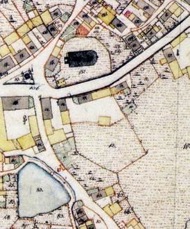 Ausschnitt aus dem Urvermessungsplan von 1852 zur Lage und Größe des Anwesens Nr.13