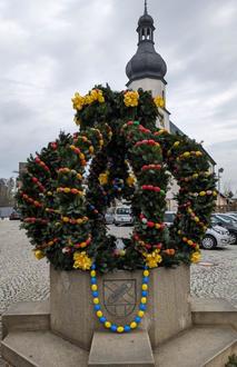 Bürgermeister Matthias Döhla bedankte sich bei allen fleißigen Helfern vom Osterbrunnenteam, die wieder engagiert mithalfen, den Konradsreuther Brunnen auf dem Marktplatz für das Osterfest festlich zu schmücken und sich an einem weiteren Tag die Zeit nahmen, um auch das Osterei ebenfalls festlich herzurichten. Sein Dank galt auch dem Bürgerverein und den Mitarbeiterinnen und Mitarbeitern des gemeindlichen Bauhofs.