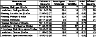 Messergebnisse der kommunalen Verkehrsüberwachung der Gemeinde Pliening im Februar/März/April 2023: