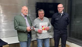 Links auf dem Bild Erster Stadtrat Bernhard Geist, Mitte Otto Knapp, Rechts Wehrführer Florian Seitz