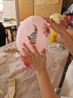 Nach der Trocknung der Schirme wird der Luftballon, der als Form diente, entfernt, und die Schirme können dann mit Lichterketten ausgestattet werden. Besonders kreativ gestalteten die Mädchen die Lampenschirme, indem sie verschiedene gepresste Blumen und Pflanzen in das Papier einarbeiteten. Das Ergebnis: Ein wunderschönes Schattenspiel, das jedes Zimmer in ein sanftes, natürliches Licht taucht.