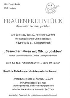 15.00 Uhr Frauenkreis Ev. Gemeindehaus Kirchbrombach