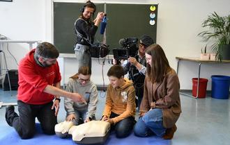 DRK-Odenwaldkreis als Vorreiter bei ZDF-Dreh an der Georg-August-Zinn Schule (GAZ) in Reichelsheim dabei