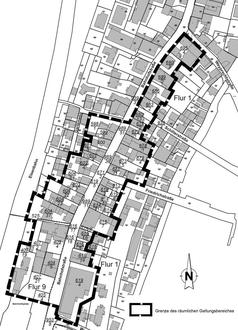 Geltungsbereich der Veränderungssperre - Teil Nord. Datengrundlage: Amtliches Liegenschaftskatasterinformationssystem (ALKIS) der Hessischen Verwaltung für Bodenmanagement und Geoinformation