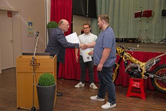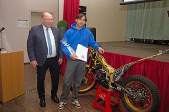 Bürgermeister Axel Muhn mit Trial-Vize-Weltmeister Rodney Bereiter