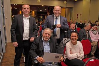 Stadtverordnetenvorsteher Frank Hofferbert, Ehrenstadtrat Willi Reichert und Bürgermeister Axel Muhn