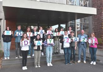In welche Abteilung sie einen Vormittag lang hineinschnuppern durften, erfuhren die Teilnehmenden nach einer Begrüßung durch den Ersten Kreisbeigeordneten Oliver Grobeis und Karoline Kampa vom Personalamt. „Ich bin begeistert von der fast schon rekordverdächtigen Teilnehmerzahl und dem großen Interesse an unserer Kreisverwaltung“, sagte Grobeis. Der Girls´-und-Boys´-Day sei eine sehr gute Gelegenheit, sich vor Ort anzuschauen, „welche unterschiedlichen Aufgaben es bei uns gibt, welche Abteilungen wie zusammenarbeiten und was die Mitarbeitenden hier täglich für die Menschen in der Region tun“. Der Einblick helfe auch dabei, „ein Gefühl dafür zu bekommen, ob später einmal eine Ausbildung oder ein Studium in der Kreisverwaltung infrage kommt.“