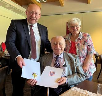 Bürgermeister Axel Muhn, Geburtstagskind Erich Süssner und Ehefrau Ilse Süssner