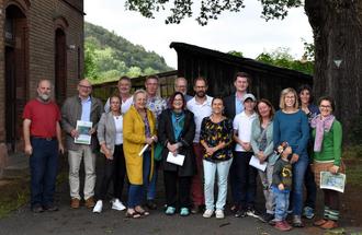 Landrat Frank Matiaske (2. v. l.) und Marvin Donig (Leitung Stabsstelle Landrat, 6. v. r.) dankten den Teilnehmenden der diesjährigen Aktion Naturgarten für ihre Bereitschaft, ihre Gärten für die Allgemeinheit zu öffnen und überreichten als Wertschätzung Einkaufs-Gutscheine für Gartenbedarf.