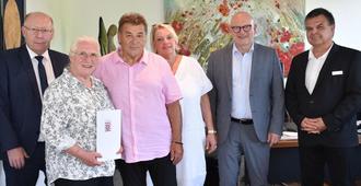 Es waren dramatische Minuten für Helmut Oestreich, damals, im Oktober vergangenen Jahres. Sein Leben hing am seidenen Faden, als sein Herz beim Tennisspiel in Michelstadt plötzlich aussetzte. Ute Krieger-Griebe, die auf dem Nebenplatz spielte, sah, wie er leblos auf dem Boden lag und handelte sofort: Mit einer Herzdruckmassage setzte sie das Herz wieder in Gang und rettete ihm so das Leben. Dafür hat Ministerpräsident Boris Rhein sie nun öffentlich belobigt. Landrat Frank Matiaske übergab ihr jüngst im Beisein von Helmut Oestreich die entsprechende Urkunde und dankte ihr auch persönlich für ihren vorbildlichen Einsatz: „Gut, dass Sie zur Stelle waren.“