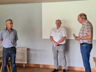 von links: Ausscheidender Bauhofleiter Udo Hinninger, Bürgermeister Axel Muhn und Personal- und Hauptamtsleiter Markus Best.