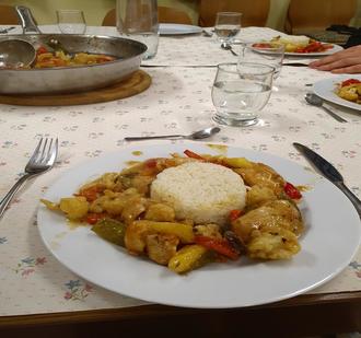 Die Jugendkochgruppe "Cook & Fun" begeistert weiterhin mit tollen Gerichten und fröhlichem Miteinander! Beim letzten Treffen zauberten die Jugendlichen ein köstliches Drei-Gänge-Menü, das alle begeistert hat. Als Vorspeise gab es einen frischen Rote-Bete-Salat mit Walnüssen, als Hauptspeise wurde ein aromatisches Hähnchen-Curry gekocht und als Dessert wurde eine Mascarponecreme mit Kaki und Ananas serviert.