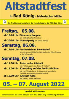Nach zwei Jahren Zwangspause findet endlich wieder das traditionelle Altstadtfest der Handballabteilung der TSG Bad König wie gewohnt im „Ewwerdorf“ statt.