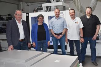 So möglicherweise auch mit dem Familienunternehmen Leitermann, das sich als Zulieferer oberflächenveredelter Holzwerkstoffe am Markt etabliert hat. Bereits in dritter Generation ist das Unternehmen im Odenwaldkreis fest verwurzelt und feiert in diesem Jahr sein 95-jähriges Bestehen. Mit seiner Produktpalette bedient die Ludwig Leitermann GmbH & Co. KG die Nachfrage nach individuell beschichteten Holzwerkstoff- und Schichtstoffplatten, Verbundelementen und Akustikplatten. Auch Bodenbeläge für Lagerflächen, die besonderen Anforderungen im Hinblick auf Brandschutz und Arbeitssicherheit unterliegen, werden im Unternehmen produziert. Erst kürzlich wurde für die Konfektionierung von Fertigteilen eine moderne CNC-Maschine angeschafft. Insgesamt 38 Mitarbeitende sind aktuell im Lager, am Zuschnitt, an den Pressen und Beschichtungsanlagen sowie im kaufmännischen Bereich tätig.
