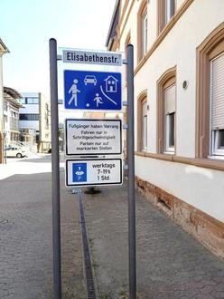 Für diesen gesamten Bereich ist durch die Beschilderung Schrittgeschwindigkeit und das Parken nur in gekennzeichneten Flächen sowie im Zeitraum von 7:00 bis 19:00 Uhr mit Parkscheibe eine Höchstparkdauer von einer Stunde angeordnet.