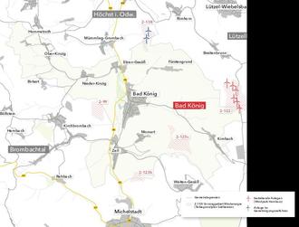 Auf dem Gebiet der Stadt Bad König liegen insgesamt fünf Windvorranggebiete. Für drei dieser Gebiete laufen derzeit Planungen für den Bau von Windenergieanlagen, die unterschiedlich weit fortgeschritten sind: Die PNE AG hat im Februar 2022 beim Regierungspräsidium Darmstadt Genehmigungsanträge für zwei Windenergieanlagen auf dem Vorranggebiet 2-138 bei Mümling-Grumbach eingereicht, davon eine auf Gebiet Bad Königs. Im Vorranggebiet 2-123b bei Zell plant die VSB Neue Energien Deutschland GmbH den Windpark Heuberg, mit einer Anlage in Michelstadt und zwei in Bad König. Darüber hinaus prüft die RWE Renewables GmbH derzeit die Errichtung von Windenergieanlagen durch die Projektgesellschaft Vortex Energy Windpark auf dem Vorranggebiet 2-125c bei Momart.