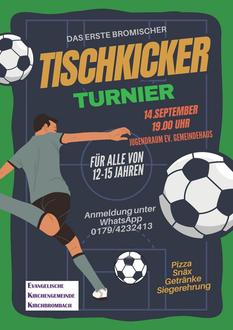19.00 Uhr Tischkicker-Turnier Jugendraum Ev. Gemeindehaus Kirchbrombach