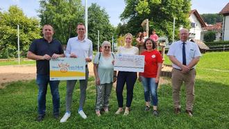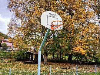 Außerdem wurden auf dem Kimbacher Spielplatz und am Jugendteffpunkt Bolzplatz (am Sportzentrum) Basketballkörbe aufgestellt. Spender: Starkes Dorf Ministerpräsident Boris Rhein, Volksbank, Kiwanis, und private Spender.
