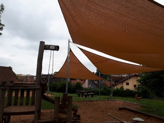 Gerade noch rechtzeitig bevor die richtig heißen Tage gekommen sind, wurden auf den Spielplätzen am Lustgarten und in der Magdeburger Straße die Sonnensegel montiert um unsere Kleinsten vor zu intensiver Strahlung zu schützen. Die Kosten von über 18.000 € konnten nur gestemmt werden mit der Unterstützung vieler Sponsoren und Spender, u. a. der Volksbank, Merck, Bad König Stiftung und vielen privaten Zuwendungen.