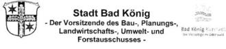Gemäß § 58 Abs. 6 HGO mache ich bekannt, dass am Montag, dem 02.02.2026, um 19:30 Uhr im kleinen Saal der Rentmeisterei, Schlossplatz 2, 64732 Bad König eine öffentliche Sitzung des Ausschusses für Bau, Planung, Landwirtschaft, Umwelt und Forsten stattfindet.