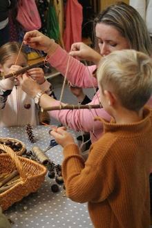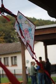 Einen schönen Samstagnachmittag verbrachten Kinder, Eltern und Erzieher um gemeinsam den Herbst einzuläuten. Mit dem Lied „Ich hol mir eine Leiter“ starteten wir in den Mittag. Die Kinder hatten die Möglichkeit verschiedenste Bastelangebote zu nutzen., Papierbäume, Mobiles aus Naturmaterial, Apfeldruck und ein tolles Windspiel standen zur Auswahl. Reger Betrieb herrschte auch im Café, das in den Räumen der Sonnengruppe aufgebaut und vom Elternbeirat bewirtschaftet wurde. Bei Kaffee, Kaltgetränken, leckerem Kuchen und Laugengebäck wurden Kontakte geknüpft und nette Gespräche geführt. Auch der Bereich des Spielplatzes und der Hof der Kita war von Eltern und spielenden Kindern belebt. Zwischendurch gab es eine Tanzeinlage, die von einigen Kindern gesanglich begleitet wurde, bevor zum Abschluss auf Wunsch der Kinder noch einmal „die Leiter“ gesungen wurde.