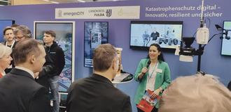 Der Odenwaldkreis teilt sich einen Ausstellungsstand mit der Stadt Darmstadt und dem Landkreis Fulda und deren digitalen Katastrophenschutz-Projekten. Puschmann und Helfrich geben den Besucherinnen und Besuchern gemeinsam mit Vertretern der Fachfirmen IQ FireWatch und Count+Care Auskunft über die Funktionen der eingesetzten Kameras und Mess-Stationen. „Wir haben viel Spannendes zu berichten. Außerdem freuen wir uns darauf, Fachkolleginnen und -kollegen kennenlernen und uns mit ihnen austauschen zu können“, so Puschmann und Helfrich.
