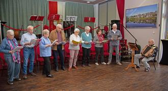 Liedvorträge des „Singkreises Anita Trippel“, Von links: Ilse Süssner, Karl-Heinz Wamsser, Renate Wamsser, Hans Berle, Heide Hix, Marga Koch, Anita und Herbert Trippel und sitzend Erich Süssner