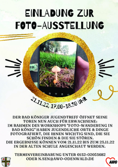 Neben diesen beiden Aktionen fand auch die Foto-Wanderung (01. + 07.11.22) statt. An dieser Stelle möchte ich Sie alle zu der dazugehörigen Foto-Ausstellung einladen. Die genauen Informationen können Sie dem Flyer entnehmen.
