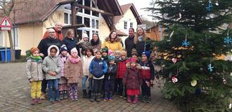 Anlässlich des am Wochenende stattgefundenen Weihnachtsmarktes in Zell und zur beginnenden Adventzeit, stellten beide ortsansässigen Kitas Apfelbaum und Fabula mit Ihren Kindern eigenen Weihnachtsschmuck her, der nun seit vergangenem Freitag den Baum vorm Dorfhaus schmückt. Nach zwei Jahren war es nun endlich wieder soweit, dass man zusammenkommen konnte und gemeinsam etwas für den Ort gestalten durfte. Einige Kinder trafen sich am Wochenende auf dem Zeller Weihnachtsmarkt, um ihren Familien den nun täglich leuchtenden Baum mit ihrem Schmuck zu zeigen. So konnte auch die ein oder andere Köstlichkeit von den Ständen gegessen und ein schöner gemeinsamer erster Advent gefeiert werden.