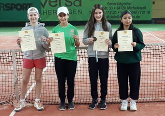 Im Feld der Juniorinnen U14 setzte sich im Finale Martha Stock vom TC Michelstadt gegen Mariella Flath vom TC Brensbach durch. Den dritten Platz konnte sich Leticia Carvalho Rode vom TC Bad König erspielen.