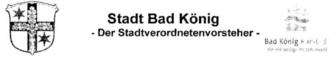 Gemäß § 58 Abs. 6 HGO mache ich bekannt, dass am Donnerstag, 20.02.2025, 20:00 Uhr eine öffentliche Stadtverordnetenversammlung der Stadt Bad König im großen Saal der Rentmeisterei, Schlossplatz 2, 64732 Bad König stattfindet.