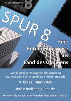 An acht Abenden dem Glauben auf die Spur kommen – dazu laden die Evang. Kirchengemeinden Bad König und Kirchbrombach sehr herzlich ein. Die acht Abende in der Zeit vom 09. bis zum 21. März sind als „Entdeckungsreise ins Land des Glaubens“ konzipiert. Allerdings ist das eine Reise ohne Kofferpacken – alle Abende finden im Evang. Gemeindehaus Kirchbrombach statt. Weitere Infos auf badkoenig-lebt.de und in Flyern, die in den Kirchen, Gemeindehäusern, manchen Geschäften etc. ausliegen. Herzliche Einladung – gönnen Sie sich den Luxus, zumindest einmal im Leben intensiv über den eigenen Glauben nachzudenken!