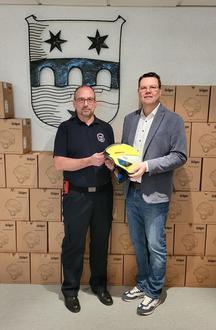 Die Lieferung wurde von Bürgermeister Jens Fröhlich, stellvertretend für alle Kameradinnen und Kameraden der Freiwilligen Feuerwehr Höchst i. Odw. an den Gemeindebrandinspektor Frank Schnellbacher übergab.