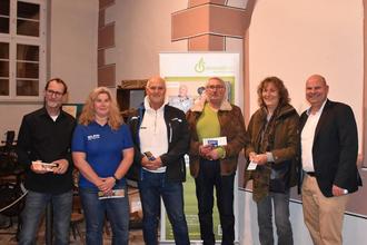 Beigeordneter Ralf Bämpfer-Vetter und Oliver Grobeis gratulierten auch den Mitgliedern der Interessengemeinschaft Obrunnschlucht Karl Stutz und Klaus Pankow zur Verleihung der Ehrenamts-Card und dankten ihnen für ihr ehrenamtliches Engagement bei der Pflege und dem Erhalt des Wanderpfades in der Obrunnschlucht.