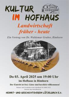 Der Heimat- und Geschichtsverein Lützelbach setzt seine Vortragsreihe fort am Donnerstag, den 03.04.2025 um 19:00 Uhr im Hofhaus-Keller in Rimhorn, Rathausstraße 29, mit einem Vortrag von Dr. Waldemar Gruber, Lützelbach-Rimhorn.