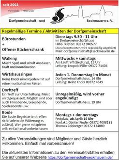 Aktuelle Informationen auch unter https://www.dorfgemeinschaft-seckmauern.de