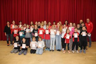 Weitere Erstabsolventen sind Sam Pöhler (Bronze), Casper Matthes, Marlene Spies, Lena Zimmermann, Lea da Costa und Ronja Schnellbacher (alle Silber) sowie Jano Zimmer mit dem goldenen Sportabzeichen. Ihr zweites Sportabzeichen in Bronze konnte Nora Schäfer entgegennehmen. Silber ging an Antonia und Carolina Nowak, Luka Keller, Nico Hilbert und Ina Schnellbacher. Mit Gold wurden Benno Zahn, Marc Fuchs und Raphael Schmidt ausgezeichnet. Ihr drittes Abzeichen in Gold erhielten Viktoria Fuchs und Phillip Pfannmüller. Gold glänzte auch das Abzeichen von Hannes Zahn und Noelle Bischof bei der 4. Wiederholung. Jubiläumssportabzeichen für die fünfte Wiederholung erhalten Nika Köhler (Silber) sowie Colin Bischof und Juna Köhler (Gold). Für Felix Schmucker war es bereits die 6. Auszeichnung in Gold, was nur noch von Leonard Schmidt und Adrian Geist mit sieben goldenen Sportabzeichen übertroffen wurde.